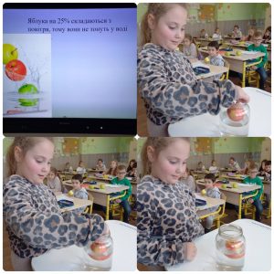 2-А клас теж занурився у яблучну тематику: експериментували, досліджували, порівнювали й навіть перевірили, чи дійсно яблуко не тоне у воді (спойлер – так!).