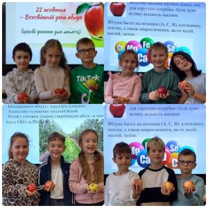 3-А клас відзначив Всесвітній день яблук із поробками, математичними кошиками, рецептами й, звісно, ароматною шарлоткою, яку спекла однокласниця Ліза.